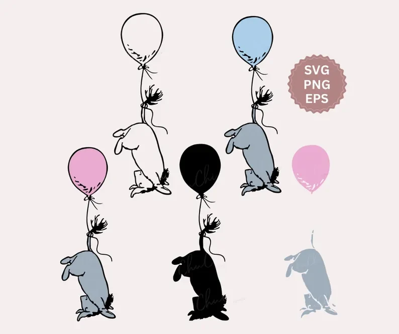 Item Details: This Classic Eeyore upside-down balloon SVG cut file features a playful design inspired by the timeless Winnie the Pooh stories. The illustration shows Eeyore gently hanging upside down from a balloon, creating a lighthearted and whimsical design perfect for Cricut craft projects.